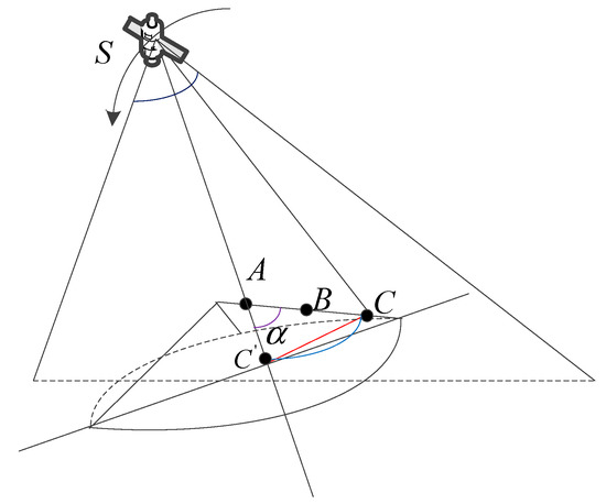 According to the geometric relationship between the satellite and the scattering points, as shown in Figure 25, the distance between the three points in the imaging results can be calculated according to Equation (25).