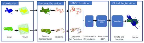 - Rusu, R.B.; Blodow, N.; Beetz, M. Fast point feature histograms (FPFH) for 3D registration. In Proceedings of the 2009 IEEE International Conference on Robotics and Automation, Kobe, Japan, 12–17 May 2009; pp. 3212–3217. [Google Scholar]