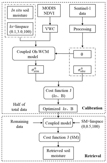 Figure 4. Diagram of model calibration and retrieval of soil moisture.