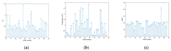 In this process, we applied Equation (2) to the VV polarized backscattering and ground measurements, resulting in surface roughness values for 43 soil moisture ground stations (Figure 6a). In addition, the mean soil temperature (Figure 6b) and NDVI (Figure 6c) were verified to ensure unfrozen and bare soil moisture on April 1, 2015. Most values of the surface roughness ks range from 0.3 to 0.7. Previous studies have estimated the surface roughness parameters of these stations [31], and s is mostly distributed between 0.2 and 0.6, demonstrating that the values of ks are consistent with our estimated results.