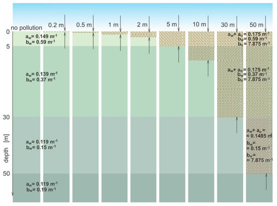 - Otremba, Z. Modeling of the light transfer in a water column polluted with oil suspension. J. Eur. Opt. Soc. Rapid Publ. 2013, 8, 13067. [Google Scholar] [CrossRef]