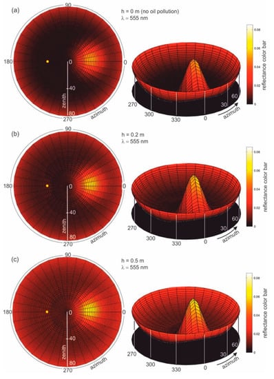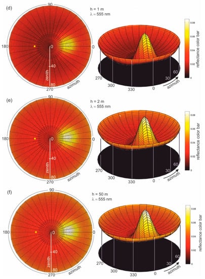 - Otremba, Z. Influence of oil dispersed in seawater on the bi-directional reflectance distribution function (BRDF). Opt. Appl. 2005, 35, 99–109. [Google Scholar]