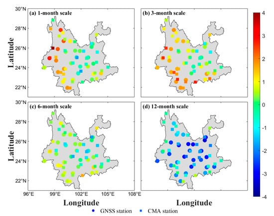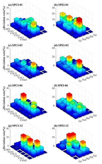 3.3. Comparison of Drought Monitoring Deviation at Different Time Scales