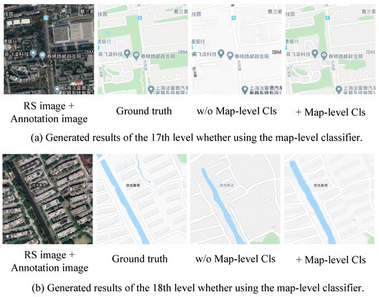 The comparison of generation results with the use of the map-level classifier and without the use of the map level classifier.