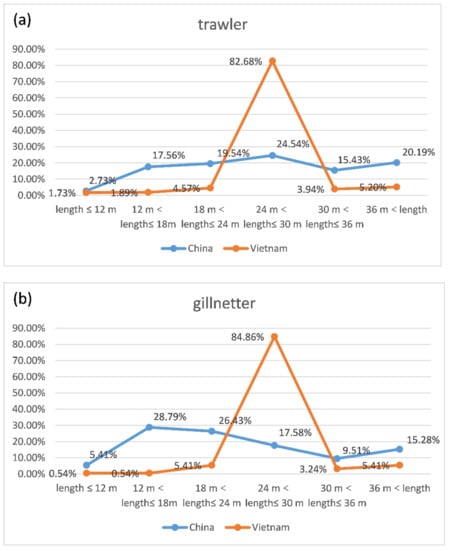 - Fishing duration of fishing vessels. The average fishing duration of trawlers and gillnetters was greatly affected by month, while the seiners were almost unaffected. In June, the cumulative fishing duration of Chinese fishing vessels dropped significantly, and the average fishing duration of trawlers and gillnetters was only 50% of that of other months.