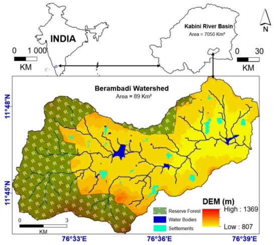 Location of the Berambadi watershed in the Kabini River Basin of India.