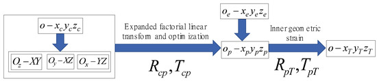 The order of magnitude of the control point coordinate located in is enormous compared to the corresponding virtual image coordinate. The centroid coordinate of all control points in is obtained, then the is a translation from to . It could effectively lower the order of magnitude of the control point coordinate.