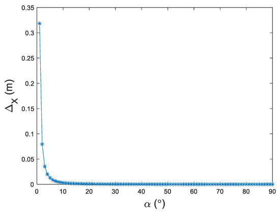 When is small, it leads to large , so the reliable measuring range is narrower than [0, 90]°. When ° and m, increases intensively with the decrease of within the range , which is more sensitive to a minor value of . changes little within the range .