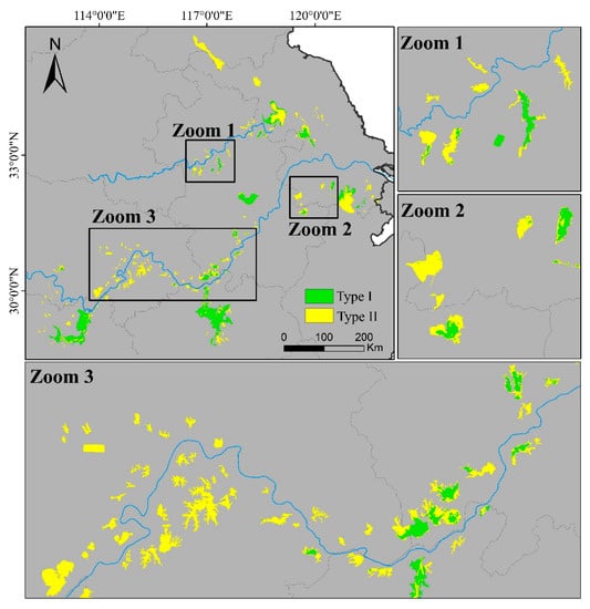- Cui, L.; Gao, C.; Zhao, X.; Ma, Q.; Zhang, M. Dynamics of the lakes in the middle and lower reaches of the Yangtze River basin, China, since late nineteenth century. Environ. Monit. Assess. 2013, 185, 4005–4018. [Google Scholar] [CrossRef] [PubMed]