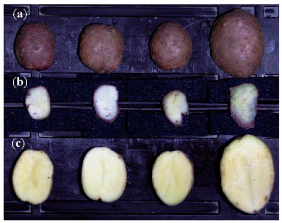 - Riza, D.F.A.; Suzuki, T.; Ogawa, Y.; Kondo, N. Diffuse reflectance characteristic of potato surface for external defects discrimination. Postharvest Biol. Technol. 2017, 133, 12–19. [Google Scholar] [CrossRef]