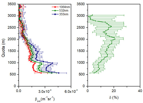 Lidar profiles of aerosol backscattering (βa) and linear depolarization (δa) derived from diurnal lidar observations carried out on 12 July 2017 in Naples.
