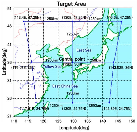 Figure 2. Spatial information observed by the GOCI http://kosc.kiost.ac.kr/p20/kosc_p21.html (accessed on 26 May 2020).