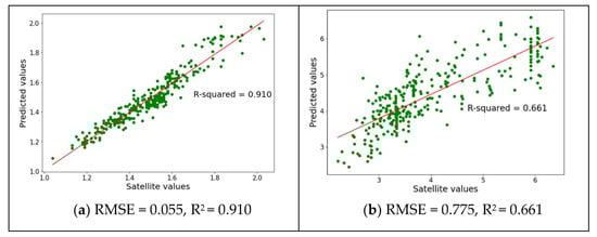 Figure 15. Examples of (a) good R2 and (b) bad R2 values among the results of the CNN Model II.