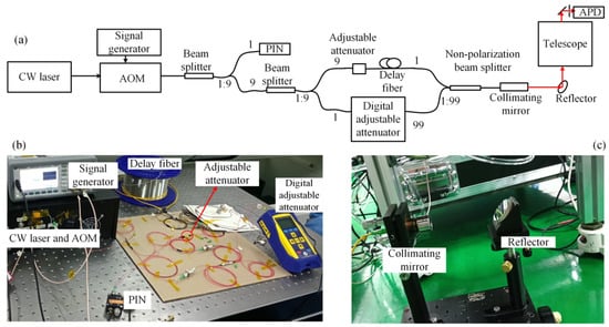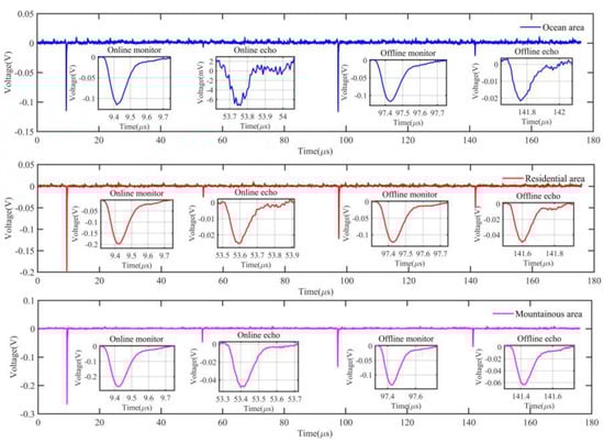 where represents online monitoring, offline monitoring, online echo or offline echo signal; is the peak voltage of each signal; represents the signal noise; represents the background noise; represents the APD photoreceiver noise; represents the ACB noise; and represents the quantization noise. Because the noise is uncorrelated, the total SNR can be expressed as