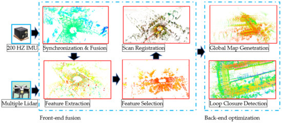 The past decade has seen a rapid rise in the use of high definition (HD) maps for high level autonomous driving; with mobile mapping systems (MMS) and simultaneous localization and mapping (SLAM) being two approaches in this field [1]. As a direct geo-referencing method, the fundamental requirement for MMS is high-precision localization. Although an accurate position can be obtained by applying real time kinematic (RTK) measurements in open sky areas, various sensors need to be utilized to compensate for global navigation satellite system (GNSS) blackouts or multipath problems in downtown areas, under urban viaducts, or in the tunnels. With the framework of estimating both the odometry and mapping at the same time, SLAM gives a solution to this challenging conundrum [2]. Though great efforts have been devoted to the study of visual SLAM [3,4,5,6,7], light detection and ranging (LiDAR) SLAM is still of great importance [8]. Compared with cameras, lidars are not sensitive to illumination variations, robust for diverse lighting conditions.