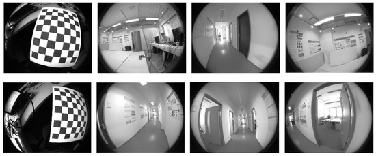 In addition, we used fisheye images from the Technical University of Munich’s (TUM) monocular visual odometry data set [39]. The scene in the data set is an indoor environment. Compared with the pipeline data, the TUM images have richer textures, no violent motion artifacts, and better image quality as shown in Figure 6. This data set was selected for comparison to verify the robustness of the proposed method in different scenarios. The TUM data set provided the ground truth of the camera pose, that is, the absolute pose information at each moment, and the poses are represented by quaternions. In this experiment, the quaternion data were converted into relative rotation angles, which are regarded as auxiliary information.