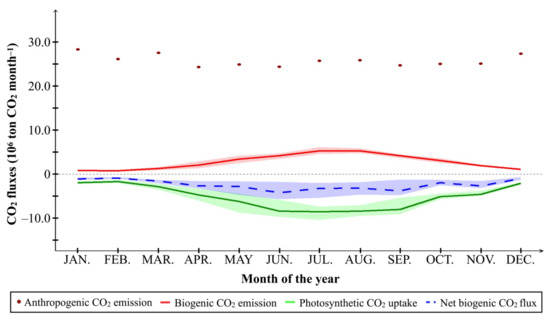 3.6. Biogenic CO2 Fluxes and Anthropogenic CO2 Emissions in the Greater Tokyo Area