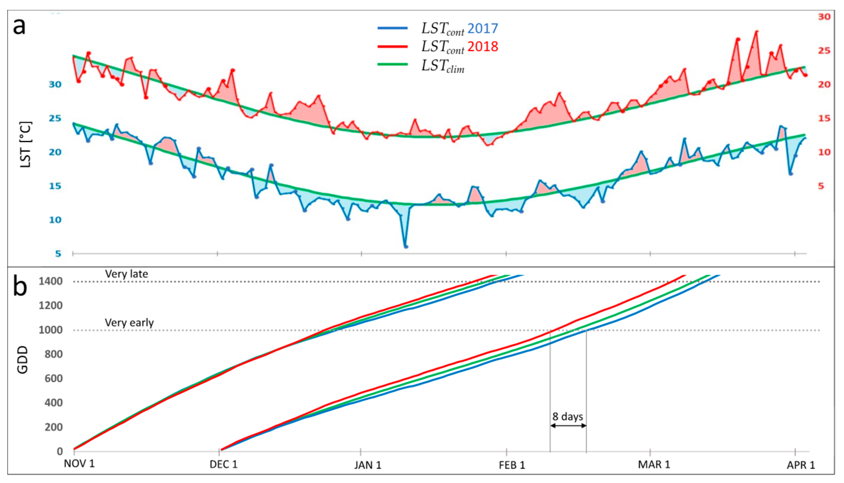 - Blum, M.; Lensky, I.M.; Nestel, D. Estimation of Olive Grove Canopy Temperature from MODIS Thermal Imagery Is More Accurate than Interpolation from Meteorological Stations. Agric. For. Meteorol. 2013, 176, 90–93. [Google Scholar] [CrossRef]