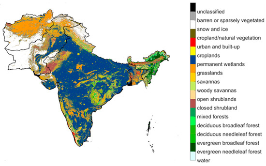 Majority land cover type of study area generated with MODIS–MCD12 data product.