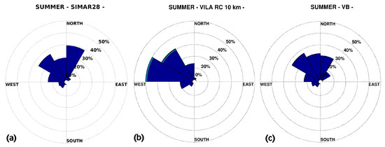 Summer wave power roses for S28 (a); VILA RC 10 km (b); and VB (c).