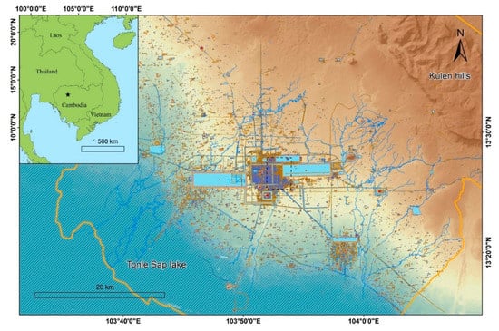 - Fletcher, R.; Pottier, C. ANGKOR: A provisional map history of Greater Angkor from ancestry to transformation. In Oxford University Press SE Asia Handbook; Oxford University Press: New York, USA, 2021. [Google Scholar]