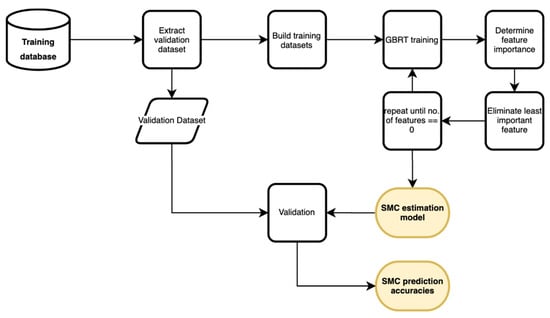 An in-depth discussion of GBRT is beyond the scope of this article. For further details, the reader should refer to [85]. This study used the algorithm implementation of Scikit-Learn [86]. Figure 3 shows the detailed workflow of the training procedure, which consists of the following steps: