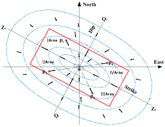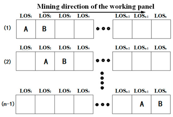 - Number the pixel displacement on the major cross section along strike direction in the LOS displacement map (LOS1, LOS2, LOS3, LOS4…LOSn−2, LOSn−1, LOSn). As the center of the basin cannot deviate beyond the mined-out areas, the search can start from the open cut.
