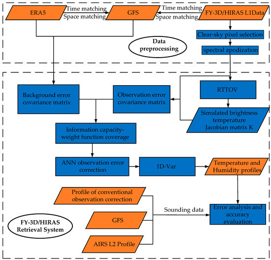 A flow diagram of the FY-3D/HIRAS retrieval system.