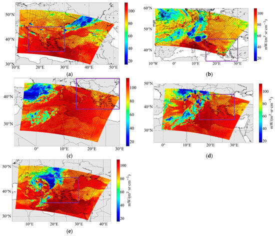 In this study, we used the FY-3D/HIRAS L1 satellite data (http://satellite.nsmc.org.cn/portalsite/default.aspx, accessed on 15 May 2021). The selected area for this experiment is a part of Western Europe, and the data were recorded from July 15th to 31st, 00:00–01:00 UTC, and from 1–5 August 2020, 00:00–01:30 UTC. The relevant performance and parameters of HIRAS are shown in the following Table 1:
