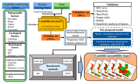 - Wang, Y.; Fang, Z.; Wang, M.; Peng, L.; Hong, H. Comparative study of landslide susceptibility mapping with different recurrent neural networks. Comput. Geosci. 2020, 138. [Google Scholar] [CrossRef]