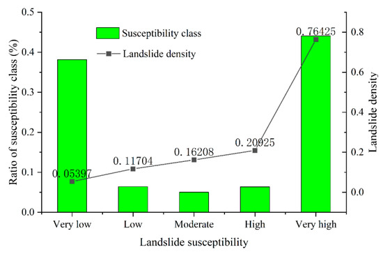Landslide density of the various susceptibility classes of LSM generated by the proposed model.