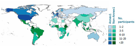 A total of 578 individuals participated in the webinar series, joining at least one webinar. Some individuals attended more than one webinar (meaning the sum of the webinar attendees is more than this). The mean number of participants per webinar was 183 (Figure 3). Fifty-one attended at least six of the seven live webinars and received a certificate that confirmed their attendance (workshop participants also received a certificate). Participants came from a total of 91 countries, 65 of which were non-annex 1 countries (mainly low-income developing countries, which are eligible to participate in REDD+), including 37 of the 47 FCPF countries (Figure 4). Sixty percent of participants were from (working in) non-annex 1 countries.