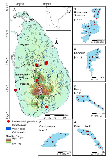 Inland water is one of the most crucial and limited natural resources that plays a pivotal role in sustaining biodiversity and human society [1,2]. However, regional environmental conditions, such as climatic and anthropogenic factors, threaten their ecological functions [3,4]. Regular observations are vital to assess the impact of surface water variation on the environment. Inland water deterioration is recognised as an emerging issue in Sri Lanka by the National Action Plan for Haritha (Green) Lanka Programme of 2009–2016 [5].