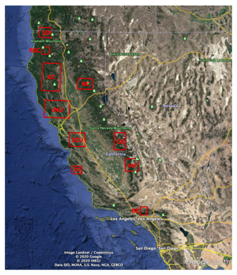 - California Department of Forestry and Fire Protection (CALFIRE). 2020 Incident Archive. 2020. Available online: https://www.fire.ca.gov/incidents/2020 (accessed on 10 December 2020).