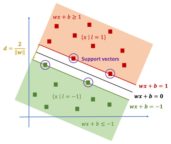 - Boser, B.E.; Guyon, I.M.; Vapnik, V.N. A Training Algorithm for Optimal Margin Classifiers. In Proceedings of the Fifth Annual Workshop on Computational Learning Theory (COLT ’92), Pittsburgh, PA, USA, 27–29 July 1992; Association for Computing Machinery: New York, NY, USA, 1992; pp. 144–152. [Google Scholar] [CrossRef]