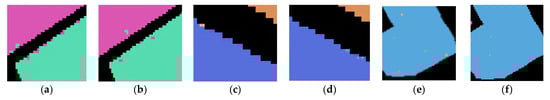 (a) (MSRN) and (b) (SAT NET) are partial results of the UP dataset, (c) (MSRN), and (d) (SAT NET) are partial results of the UP dataset, (e) (MSRN) and (f) (SAT NET) are partial results of the UP dataset.