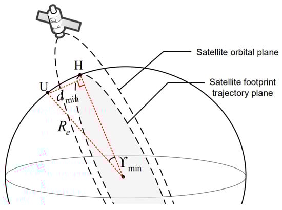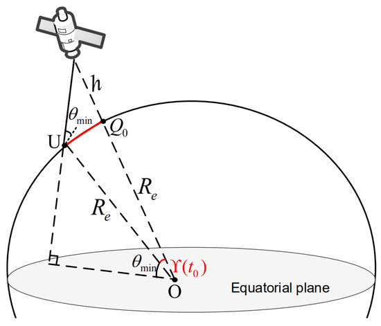 where is the radius of Earth, h is the altitude of satellite orbit, and is the user’s minimum elevation angle. Then, can be expressed as