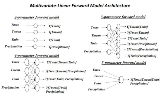 The model architecture of multivariate linear regression. The two–parameter, three–parameter, four–parameter, and five–parameter models are considered.