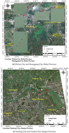 Sample Point: (a) Three Gorges Reservoir; (b) Wuhan City and Huanggang City, Hubei Province; (c) Nantong City and Taizhou City, Jiangsu Province.