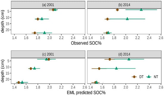 | Lincoln-REAP | NT-None DT-All | No till, no stover removal Disk till, full stover removal | CC CC | 2001, 2011, 2014 | 0–7.5 7.5–15 15–30 (0–150) | 24 24 24 | SOC~Y*T*D |