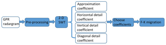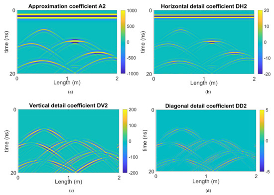where is the B-scan radargram and N is the decomposition number. In this research, we use the Matlab function ‘swt2’ for 2D SWT decomposition, and the sole parameter required is the fourth-order Daubechies wavelet.