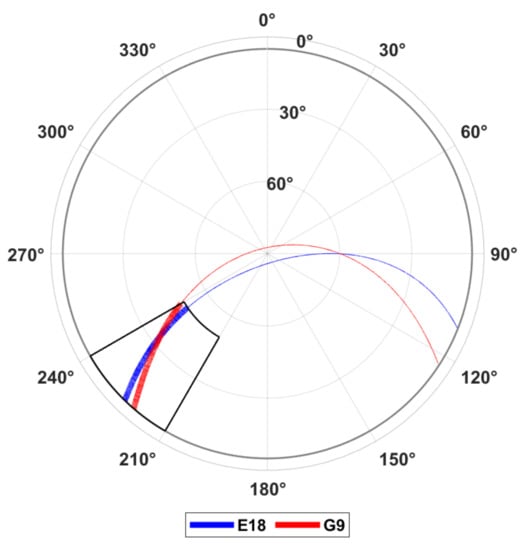 Skyplot for satellites E18 and G09.