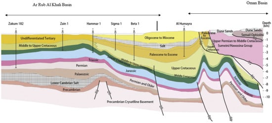 - Dyer, R.A.; Husseini, M. The Western Rub’Al-Khali Infracambrian Graben System. In Middle East Oil Show; Society of Petroleum Engineers: Manama, Bahrain, 1991. [Google Scholar]