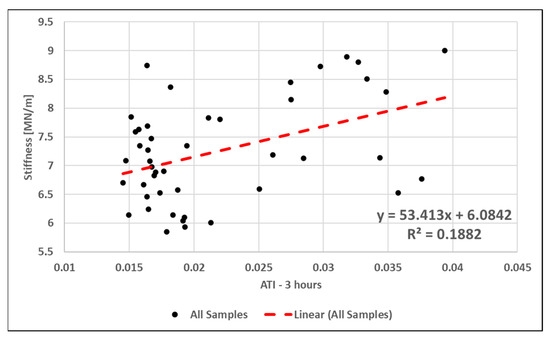 Plot of all the samples Stiffness (MN/m) verses ATI.
