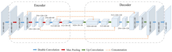 - Ronneberger, O.; Fischer, P.; Brox, T. U-net: Convolutional networks for biomedical image segmentation. In Lecture Notes in Computer Science, Proceedings of the International Conference on Medical Image Computing and Computer-Assisted Intervention, Munich, Germany, 5–9 October 2015; Springer: Cham, Switzerland, 2015; pp. 234–241. [Google Scholar]