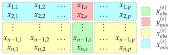 where n is the total observation epochs of the time series and p is the number of GPS stations. Every variable that contains missing values at entries will divide into the following four parts (Figure 1).