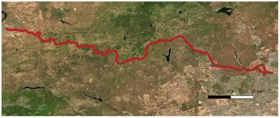 The scenario used to validate the methodology presented in this paper consists of 90 km of railway section shown in Figure 1, surveyed with an average speed of 10 km/h. This scenario has been acquired in May 2019 using the LYNX Mobile Mapper by Optech [26], a system using two LiDAR sensors. The specifications of the sensors can be found in [27]. For computational reasons, the complete dataset is divided into 450 georeferenced point clouds in .las format, thus averaging a length of 200 m for each individual point cloud. The dataset contains more than 3000 million points, being considerably larger than in other state-of-the-art works.