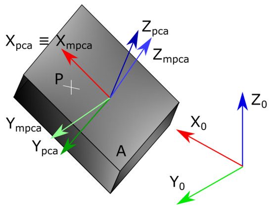 MPCA: are the world coordinates; , are the PCA eigenvectors applied in A; are the MPCA eigenvectors applied in A.
