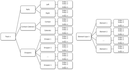 Once the data are organised to be segmented, the algorithms explained in this section are applied. The main objective of this segmentation process is the extraction of the railway track, masts, wiring, droppers, signage elements, and rails from each point cloud .