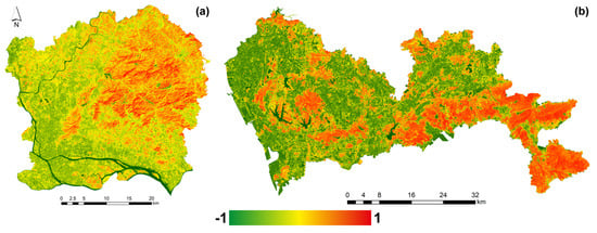 The EVI for (a) Guangzhou central urban district and (b) Shenzhen.